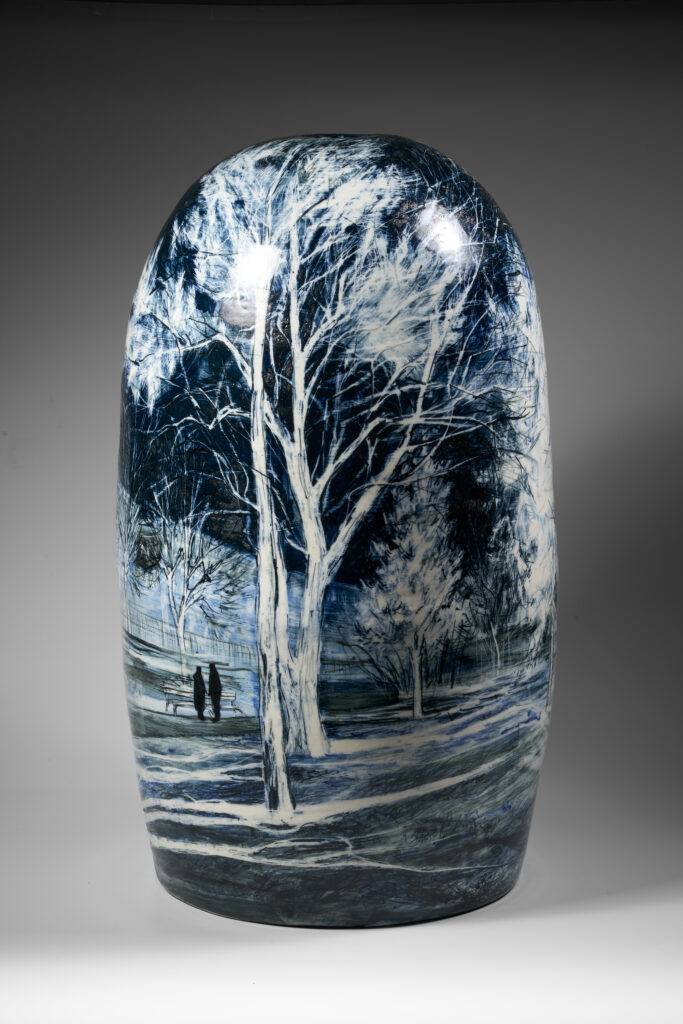 Darbs atrodas: galvenās kāpņu telpas pustāvā starp 2. un 3. stāvu